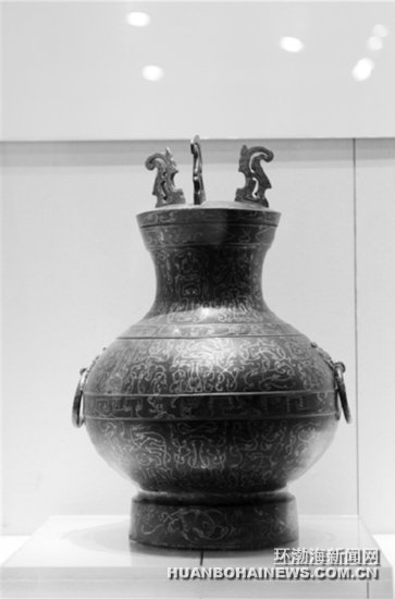 “金縷玉衣”來了 漢代王室文物展亮相唐山博物館 圖為文物展上展出的錯(cuò)金銀鳥篆文銅壺。本報(bào)記者 呂光宇 張北男 攝 環(huán)渤海新聞網(wǎng)消息 (記者 王蓉輝 王爍輝)金縷玉衣、銅騎獸人物博山爐、錯(cuò)金銀鳥篆文銅壺 ...