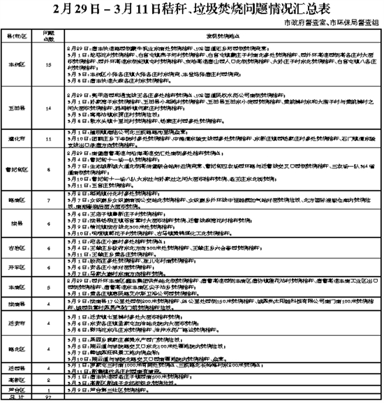 唐山市人民政府辦公廳關(guān)于對秸稈、垃圾焚燒污染大氣環(huán)境問題的通報 針對我市近期多數(shù)縣(市)區(qū)焚燒秸稈、垃圾、荒草等現(xiàn)象頻發(fā)問題,按照市政府領(lǐng)導(dǎo)要求,市政府督查室、市環(huán)保局組成了六個聯(lián)合督查組對焚燒 ...