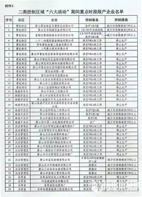 唐山世園會(huì)限產(chǎn)名單 中共唐山市委辦公廳、唐山市人民政府辦公廳,于2016年3月18日,召開(kāi)唐山市環(huán)境保護(hù)工作會(huì)議,現(xiàn)將有關(guān)會(huì)議內(nèi)容通知如下: