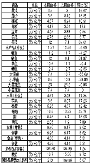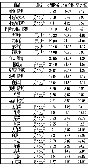唐山市生活必需品周價(jià)格情況表 (6月4日至6月10日 市商務(wù)局運(yùn)調(diào)處提供)
