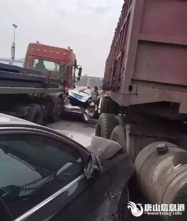 7月12日早晨6點(diǎn)50分唐古快速路上發(fā)生了一起交通事故,事故中有六車受損,其中四輛小轎車受損最為嚴(yán)重。一輛半掛車由南向北橫在路中間,四輛小轎車成南北向依次排列,一輛重型半掛車?yán)撆鞯脑诼愤呁7拧? ...