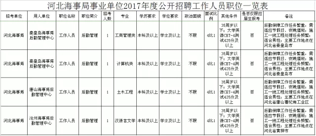 1、河北海事局事業(yè)單位招聘工作人員4名。(報考時間:2017年5月18日8時至2017年5月26日18時) 2、河北農(nóng)業(yè)大學(xué)選聘博士畢業(yè)生37名。(報名時間:公告發(fā)布日期至2017年6月20日17時) 河北 ...