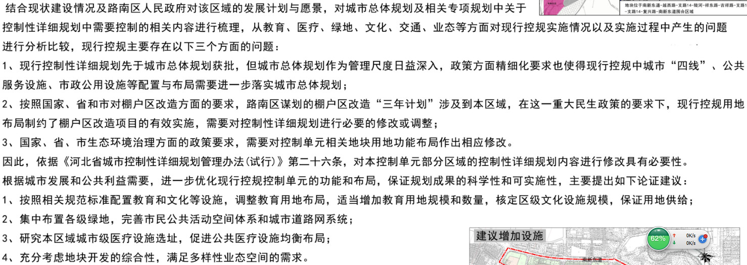 日前,唐山市城鄉(xiāng)規(guī)劃局網(wǎng)站發(fā)布消息,為了改善市民居住環(huán)境、完善公共服務(wù)配套設(shè)施、節(jié)約集約利用土地、提升城市品質(zhì)。路南區(qū)人民政府申請對南新道南側(cè)、吉祥路兩側(cè)控制性詳細(xì)規(guī)劃進(jìn)行修改論證。 論證報告公示摘要 ...