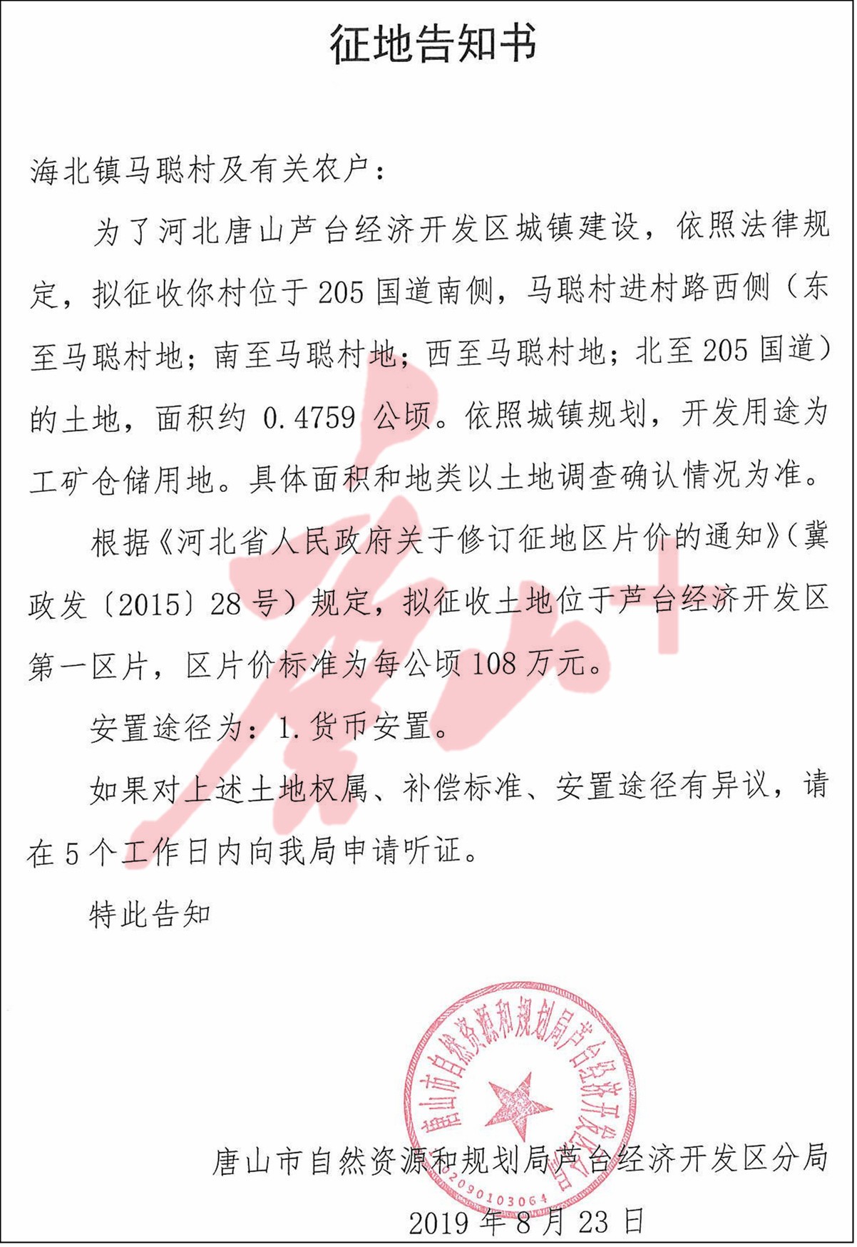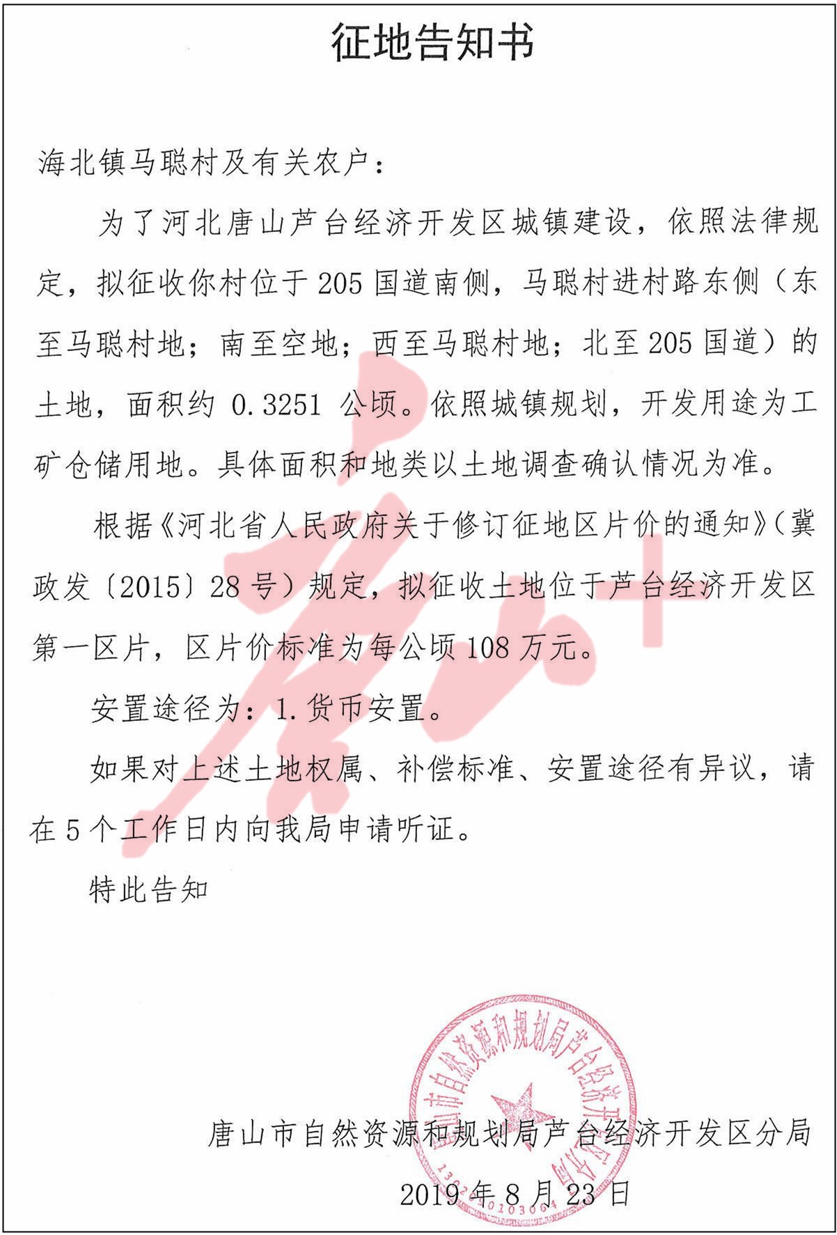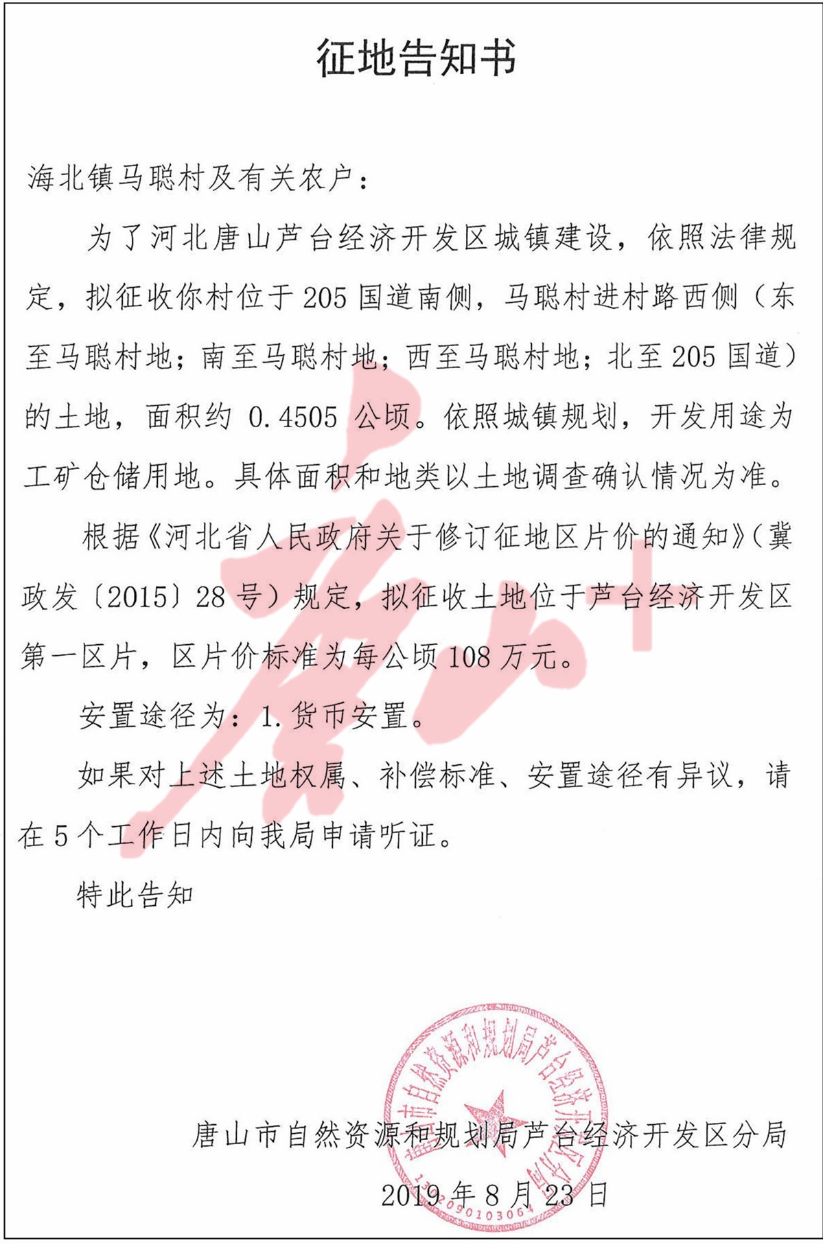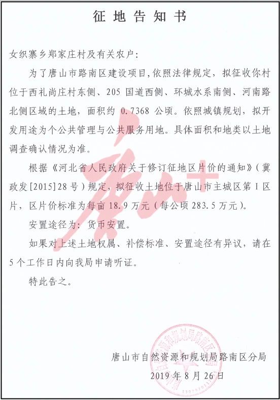 近日,中國(guó)唐山網(wǎng)站集中發(fā)布24則《征地告知書》,詳情如下: 征地一 8月28日,中國(guó)唐山網(wǎng)站發(fā)布一則《征地告知書》,女織寨鄉(xiāng)鄭家莊村0.7368公頃土地將被征收。 詳細(xì)內(nèi)容如下: 女織寨鄉(xiāng)鄭家莊 ...