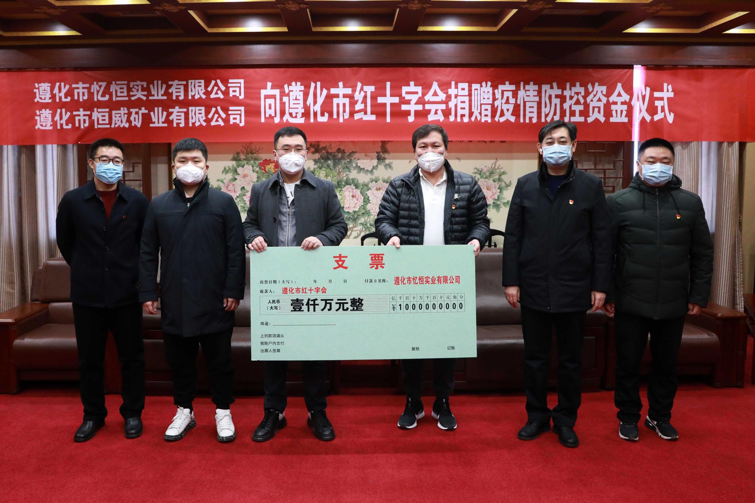 遵化民營企業(yè)捐贈2000萬元助力戰(zhàn)“疫” 遵化市億恒實(shí)業(yè)有限公司捐贈疫情防控資金儀式現(xiàn)場。 孫博/攝 環(huán)渤海新聞網(wǎng)消息(周宏武 王雙利)1月30日,遵化市憶恒實(shí)業(yè)有限公司、恒威礦業(yè)有限 ...