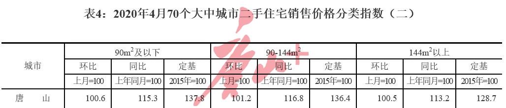 國(guó)家統(tǒng)計(jì)局5月18日發(fā)布的2020年4月份70個(gè)大中城市商品住宅銷售價(jià)格變動(dòng)情況顯示,唐山新建商品住宅、二手住宅銷售價(jià)格環(huán)比、同比均上漲。 唐山新建商品住宅,90㎡及以下小戶型環(huán)比上漲2.2%,同比上漲10.8%;9 ...