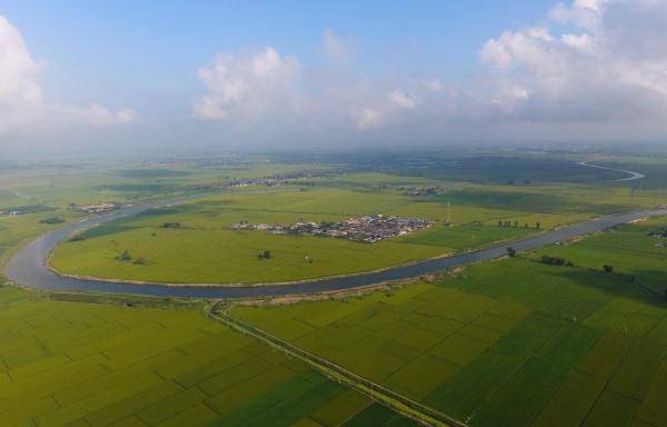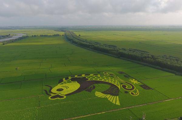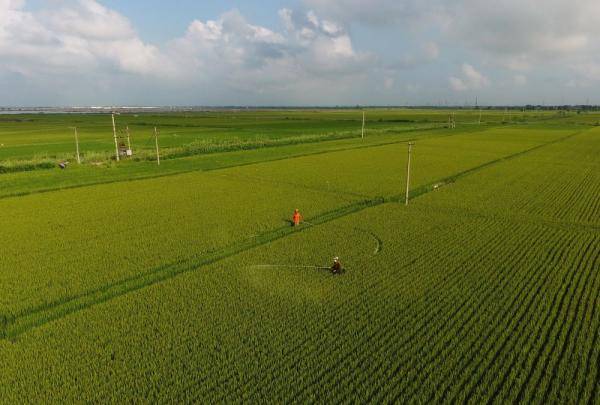 8月10日拍攝的唐山海港經(jīng)濟開發(fā)區(qū)王灘鎮(zhèn)的稻田(無人機照片)。