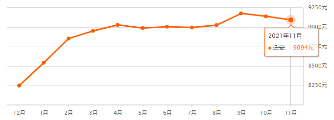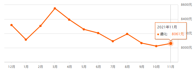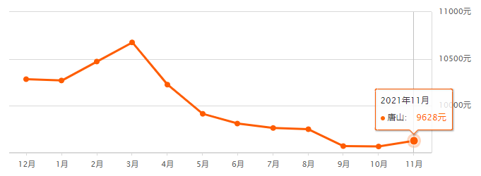 2021年11月唐山房?jī)r(jià)走勢(shì)圖出爐! 再次提醒:①以下的房?jī)r(jià)數(shù)據(jù)為唐山二手房房?jī)r(jià)②數(shù)據(jù)來源安居客,僅供參考,具體數(shù)據(jù)以市場(chǎng)成交價(jià)為準(zhǔn) 唐山11月二手房均價(jià) 9628 元/m2 唐山10月二手房均價(jià) 9567 元/m2 環(huán) ...