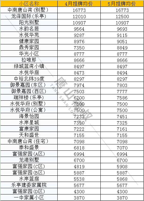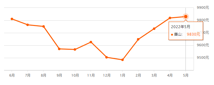 2022年5月唐山各縣區(qū)的房?jī)r(jià)數(shù)據(jù)出爐再次提醒: ①以下的房?jī)r(jià)數(shù)據(jù)為唐山二手房房?jī)r(jià) ②數(shù)據(jù)來(lái)源安居客,僅供參考 具體數(shù)據(jù)以市場(chǎng)成交價(jià)為準(zhǔn) 2022年5月唐山房?jī)r(jià)走勢(shì)圖唐山5月二手房均價(jià) 9830 元/m2 唐山4月二手房均 ...