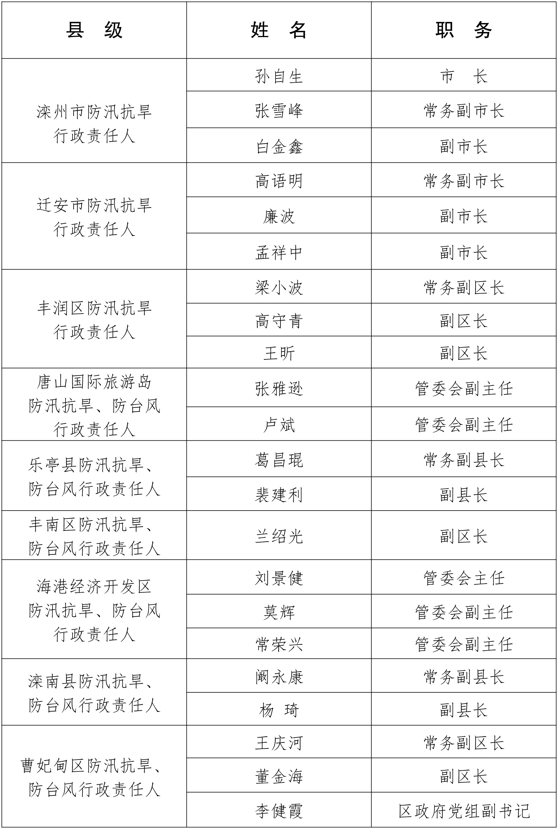 為切實做好我市2022年防汛抗旱防臺風工作,進一步落實防汛抗旱責任制,按照省防汛抗旱指揮部工作要求,現(xiàn)將市、縣兩級防汛抗旱防臺風行政責任人予以公示,接受社會監(jiān)督。唐山市防汛抗旱指揮部辦公室2022年5月30日唐 ...