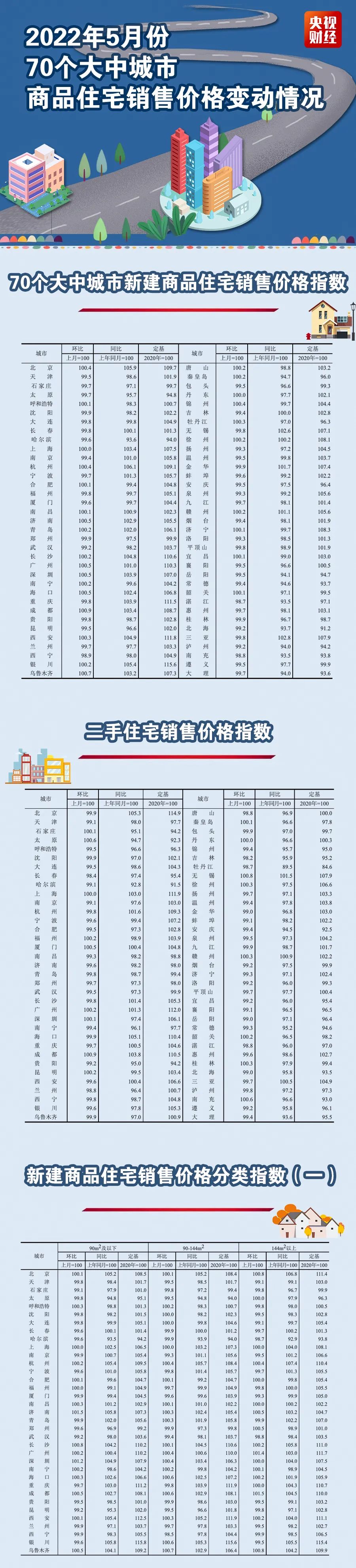 國家統(tǒng)計(jì)局今天(16日)公布2022年5月份房價(jià)數(shù)據(jù),70個(gè)大中城市商品住宅銷售價(jià)格環(huán)比總體延續(xù)降勢(shì),但降勢(shì)趨緩,新建商品住宅環(huán)比下降城市個(gè)數(shù)減少;一、二、三線城市商品住宅銷售價(jià)格同 ...
