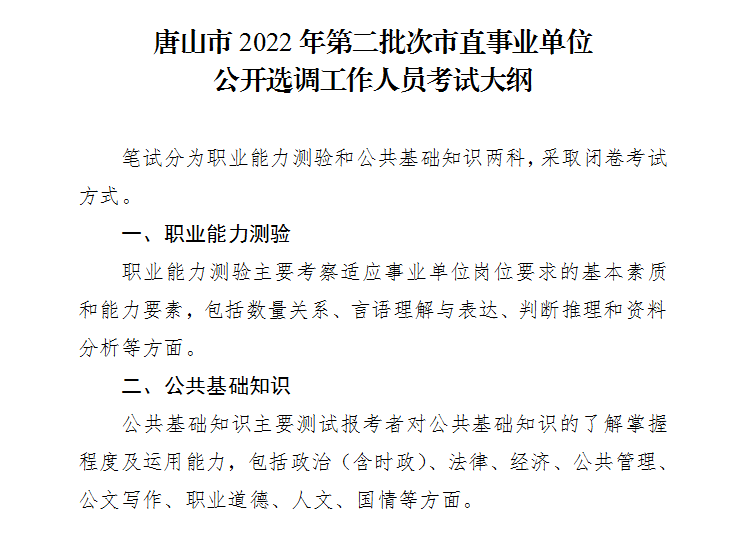 唐山市2022年第二批次市直事業(yè)單位公開招聘工作人員公告為滿足唐山市市直事業(yè)單位工作需要,根據(jù)《事業(yè)單位人事管理?xiàng)l例》及《河北省事業(yè)單位公開招聘工作人員暫行辦法》,經(jīng)研究決定,面向社會(huì)公開招聘事業(yè)編制工作 ...