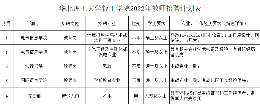 華北理工大學(xué)輕工學(xué)院2022年第二批公開招聘工作人員公告華北理工大學(xué)輕工學(xué)院成立于2001年,是經(jīng)河北省政府批準(zhǔn)教育部確認(rèn),由華北理工大學(xué)舉辦的獨(dú)立學(xué)院。學(xué)院位于京津冀——“首都經(jīng)濟(jì)圈”的河北省唐山市,區(qū)位優(yōu) ...