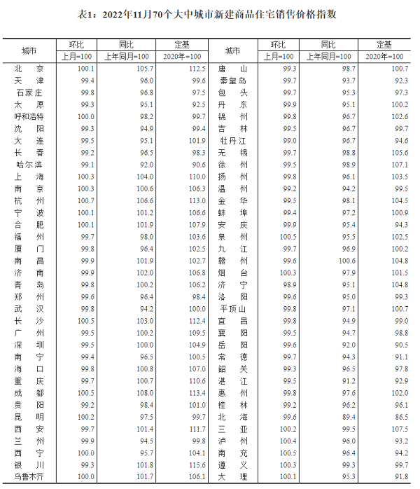 國家統(tǒng)計局今日公布2022年11月份商品住宅銷售價格變動情況統(tǒng)計數(shù)據(jù)。11月份,70個大中城市中,新建商品住宅、二手住宅銷售價格環(huán)比下降城市分別有51個、62個。 &nb ...
