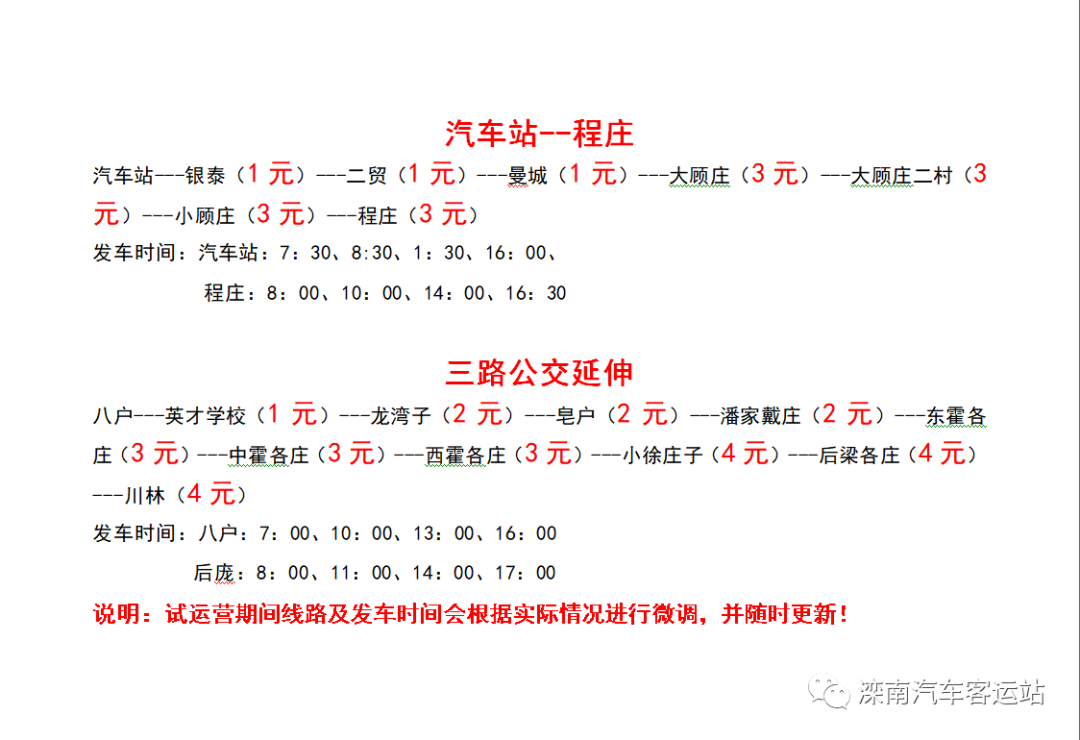 公交惠民,公交便民,按照“先行先試,以點帶面”的原則,灤南城鄉(xiāng)公交定于4月26日試運營,線路覆蓋灤南縣16個鄉(xiāng)鎮(zhèn)284個行政村。歡迎乘坐,請大家多提寶貴意見!試運營期間線路及發(fā)車時間會根據(jù)實際情況進(jìn)行微調(diào),并 ...