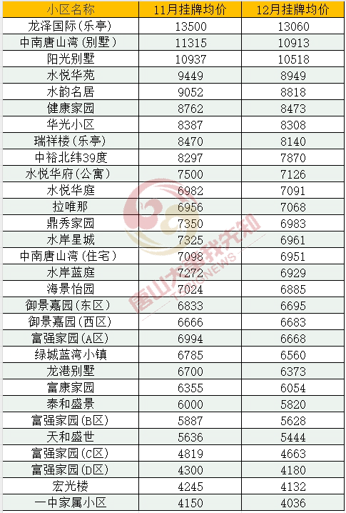 唐山各縣區(qū)二手房12月最新房價匯總表(僅!供!參!考。┰俅翁嵝眩 ①以下的房價數(shù)據(jù)為唐山二手房房價 ②數(shù)據(jù)來源安居客,僅供參考 具體數(shù)據(jù)以市場成交價為準 2023年12月唐山房價走勢圖唐山12月二手房均價 8466 ...