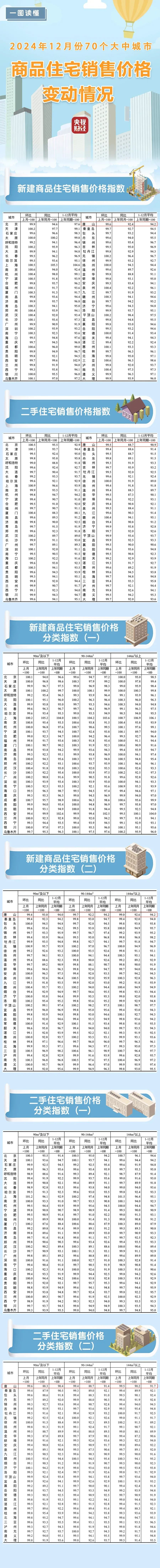 1月17日,國家統(tǒng)計局發(fā)布12月份70個大中城市商品住宅銷售價格變動情況 2024年12月份70個大中城市中 一線城市商品住宅銷售價格環(huán)比上漲 二三線城市環(huán)比總體降幅收窄 一二三線城市同比 ...
