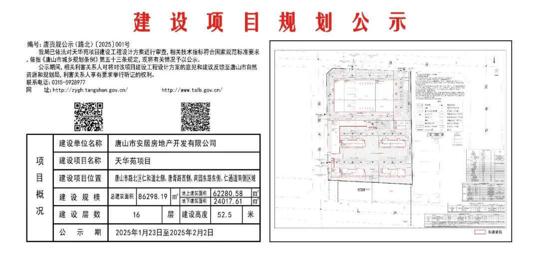 近日,唐山市自然資源和規(guī)劃局發(fā)布《建設(shè)項目規(guī)劃公示(天華苑項目)》 來源:唐山自然資源和規(guī)劃局