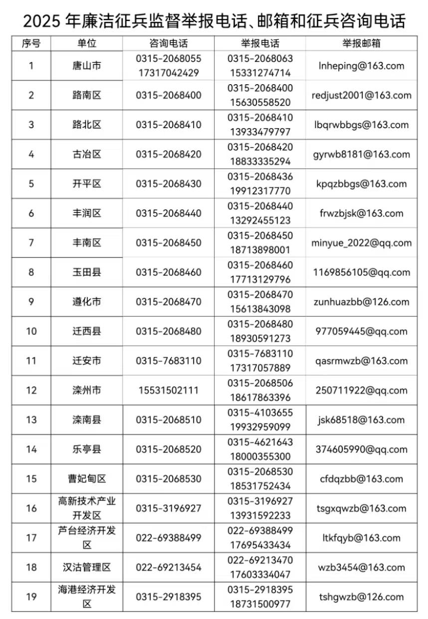 2025年廉潔征兵監(jiān)督信息公示為有效維護(hù)廣大應(yīng)征青年的合法權(quán)益,進(jìn)一步增強(qiáng)征兵工作的透明度,確保征兵工作公平、公正、公開,現(xiàn)將2025年廉潔征兵監(jiān)督舉報電話、郵箱、監(jiān)督員名單和征兵咨詢電話予以公示,歡迎社會各 ...