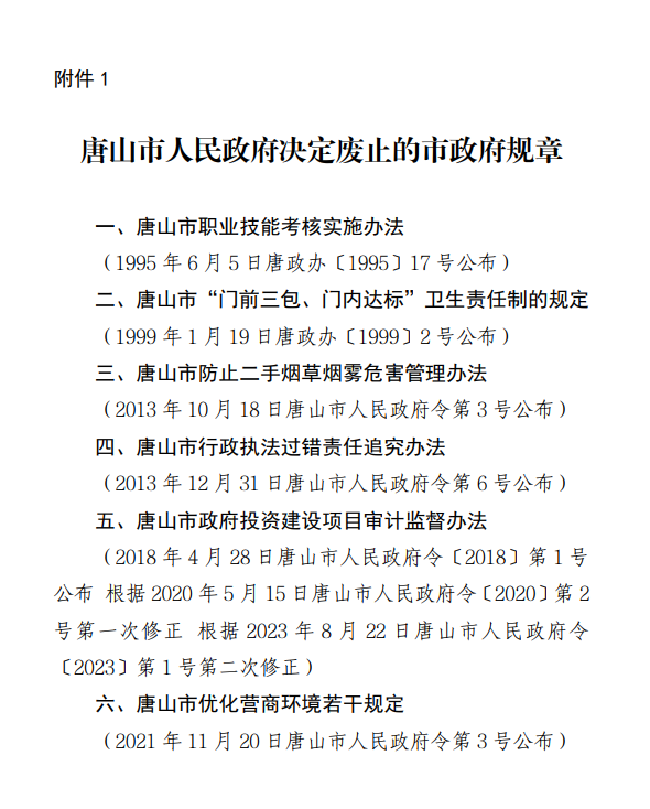 唐山市人民政府官網(wǎng)發(fā)布關(guān)于廢止和修改部分市政府規(guī)章的決定詳情如下 來源:中國唐山