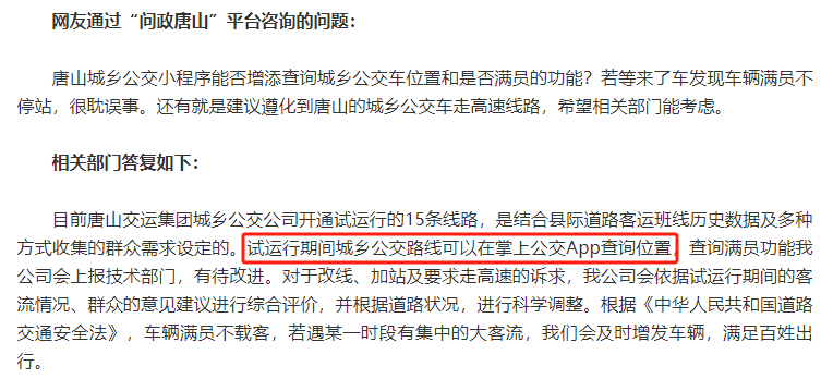 唐山城鄉(xiāng)公交開通之后大大方便了大家的出行有網(wǎng)友詢問能不能實時查詢城鄉(xiāng)公交車的位置↓ 來源:環(huán)渤海新聞網(wǎng)